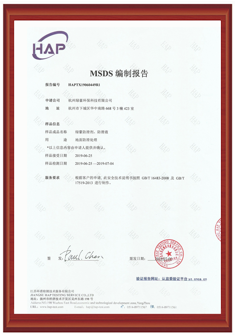 綠豪防滑劑能有效的滲入瓷磚的毛細(xì)孔內(nèi),使毛細(xì)孔變粗,在表面形成很多細(xì)小肉眼看不見的納米級(jí)凹槽,地面摩擦系數(shù)大大增加,但是不改變瓷磚外觀,表面不增加涂層,不影響打掃衛(wèi)生。