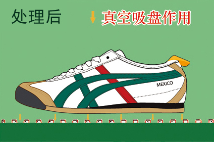 在地面遇水(油)時(shí),毛細(xì)孔會(huì)被水(油)?注滿,當(dāng)腳底通過該地面時(shí),水(油)?受壓會(huì)被從毛細(xì)孔內(nèi)擠出,而后孔內(nèi)呈真空狀態(tài),從而形成真空吸盤作用,具有一種遇水(油)?即澀的效果。