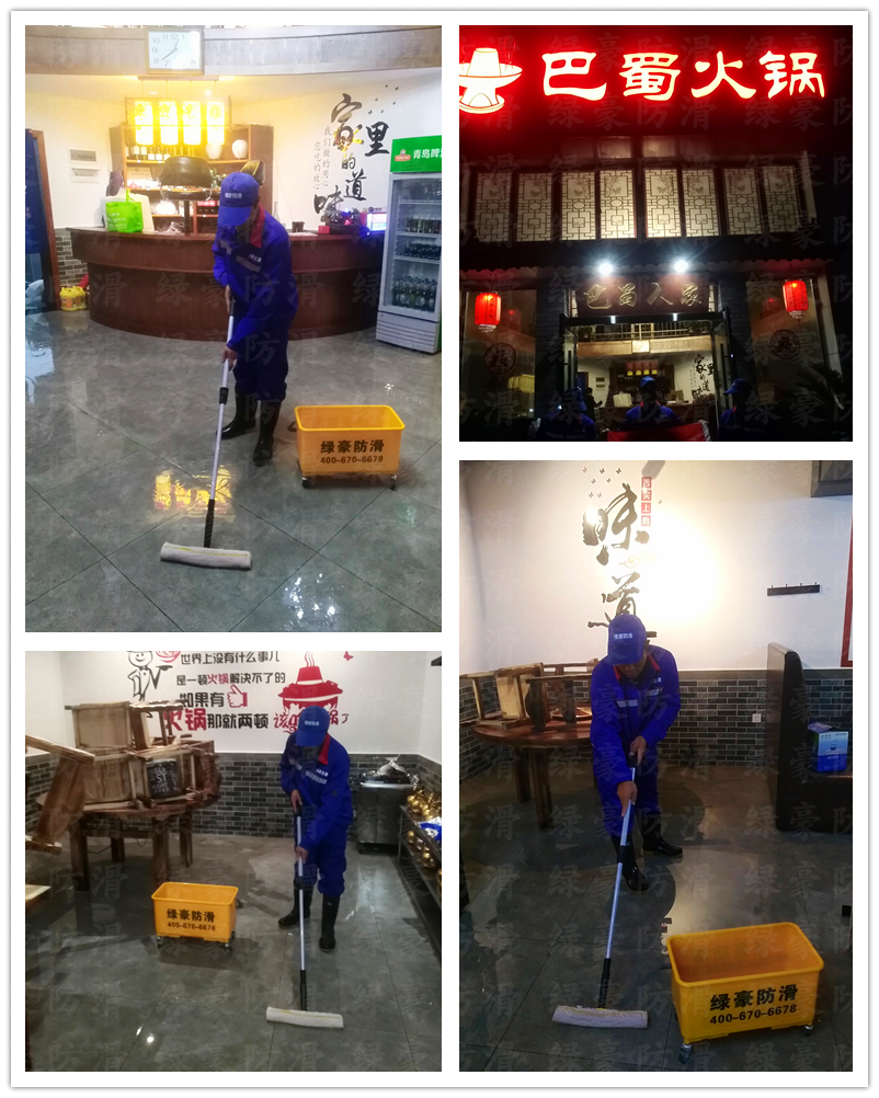 巴蜀火鍋餐飲飯店地面防滑處理案例,綠豪地面防滑是地面防滑處理專業(yè)品牌(4006706678),主要針對瓷磚防滑處理、地面防滑處理、飯店防滑處理、學(xué)校防滑處理、醫(yī)院防滑處理,具有中國環(huán)境治理甲級資質(zhì),中國防滑行業(yè)最具影響力品牌,集科研、生產(chǎn)、銷售、服務(wù)于一體,依托浙江大學(xué)科技園技術(shù)支持,致力于人居環(huán)境安全服務(wù),專業(yè)地面防滑處理,杭州電視臺有專題報道,《錢江晚報》有新聞報道,浙江政府采購云平臺供應(yīng)商,阿里巴巴地面防滑服務(wù)商;