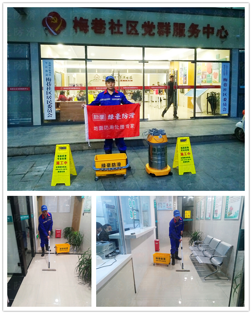 梅巷社區(qū)服務(wù)中心地面防滑處理案例,綠豪地面防滑是地面防滑處理專業(yè)品牌(4006706678),主要針對瓷磚防滑處理、地面防滑處理、飯店防滑處理、學(xué)校防滑處理、醫(yī)院防滑處理,具有中國環(huán)境治理甲級資質(zhì),中國防滑行業(yè)最具影響力品牌,集科研、生產(chǎn)、銷售、服務(wù)于一體,依托浙江大學(xué)科技園技術(shù)支持,致力于人居環(huán)境安全服務(wù),專業(yè)地面防滑處理,杭州電視臺有專題報道,《錢江晚報》有新聞報道,浙江政府采購云平臺供應(yīng)商,阿里巴巴地面防滑服務(wù)商。